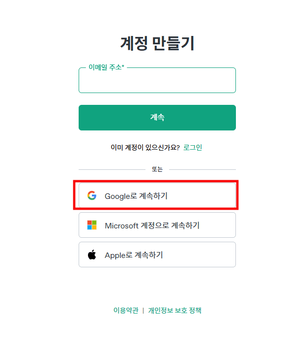 3.Google로 계속하기 클릭합니다.