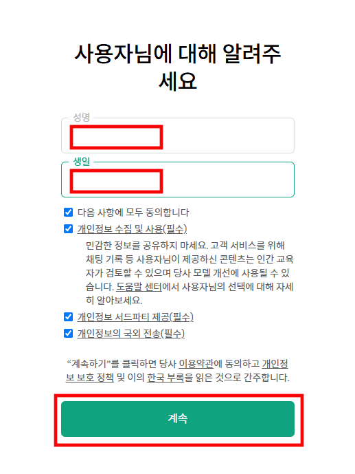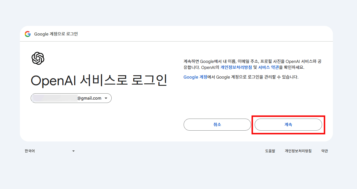 5. 계속버튼 클릭하면 끝입니다. 이제 챗gpt 사이트에서 로그인하고 사용하면 됩니다.