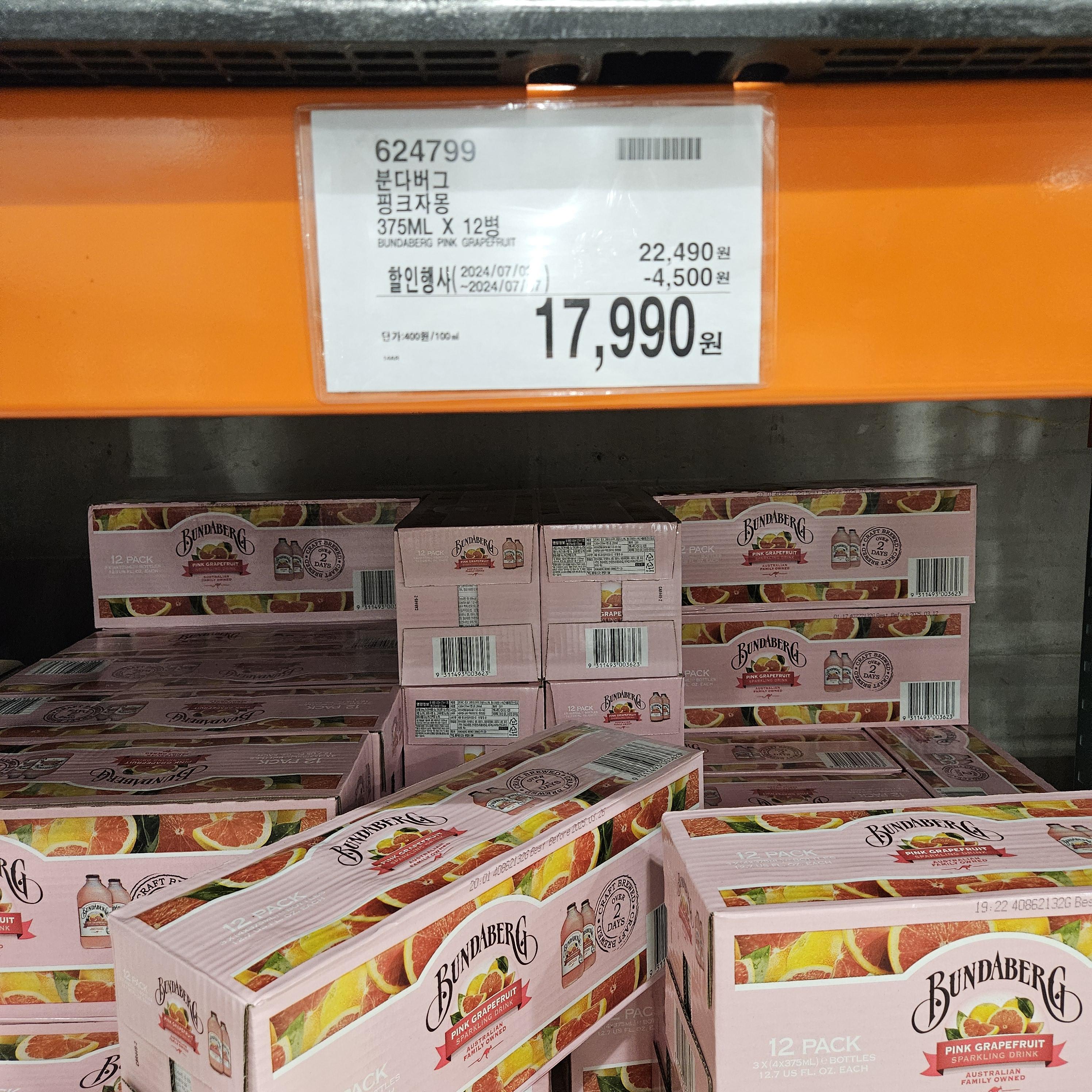 분다버그 핑크자몽 375ml x 12병
