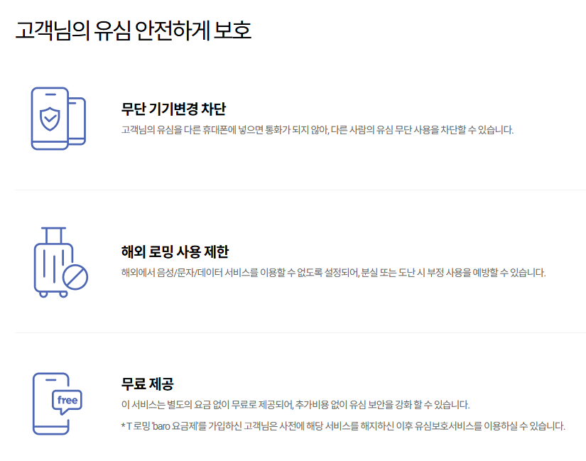 무료 제공 - 이 서비스는 별도의 요금 없이 무료로 제공되어, 추가비용 없이 유심 보안을 강화 할 수 있습니다.
